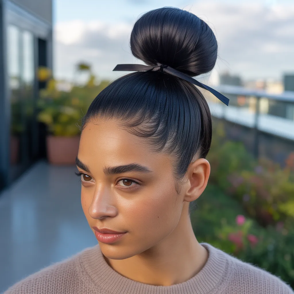 14. Slicked-Back Bun for a Bold Look