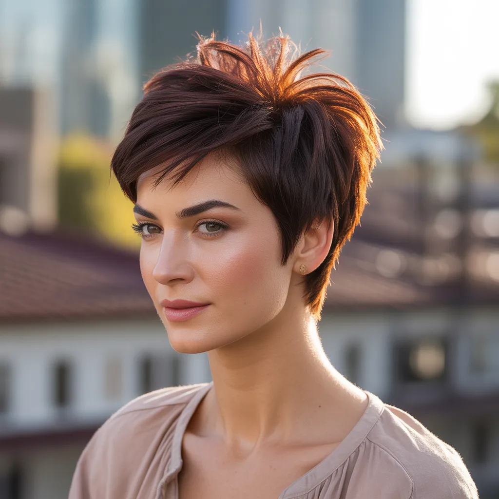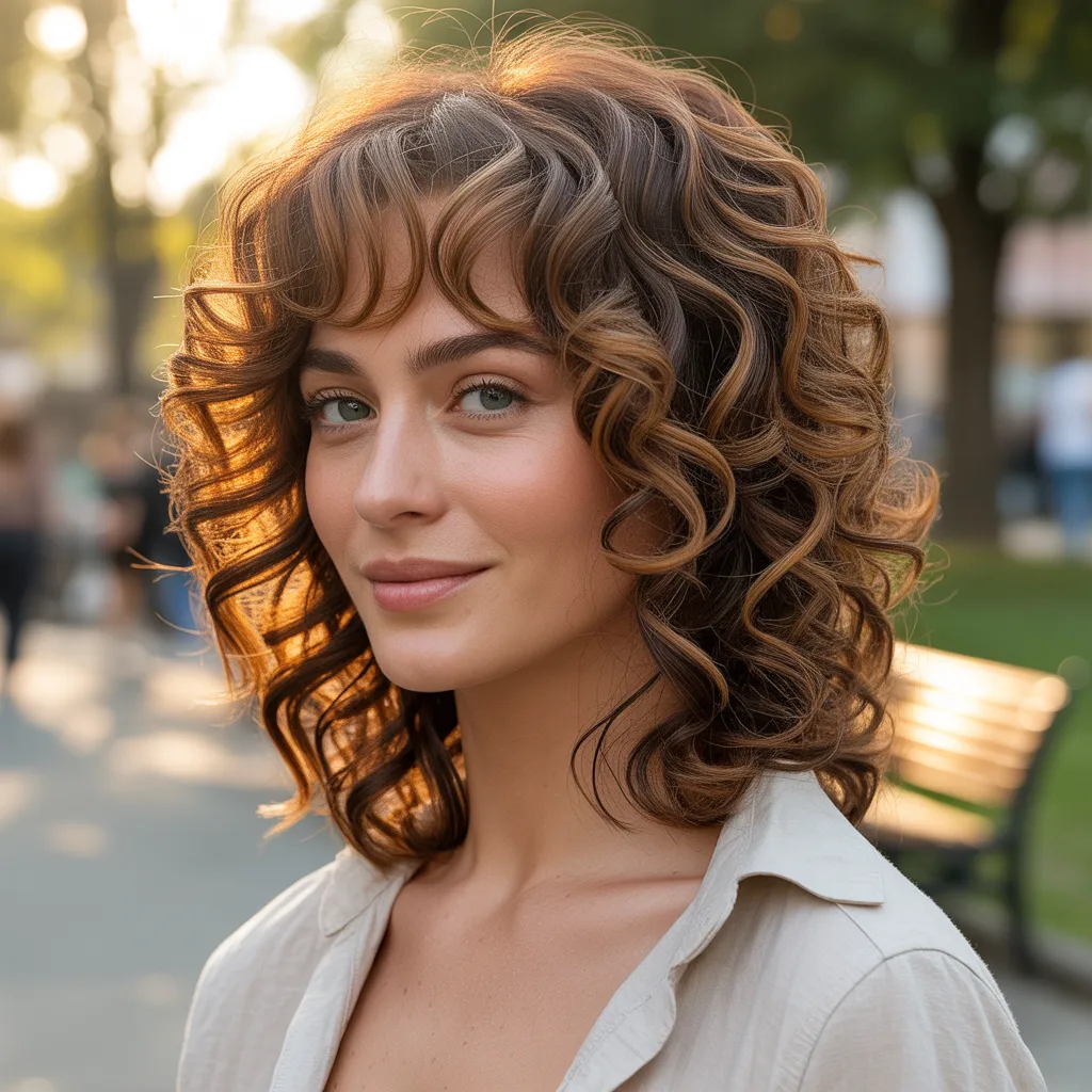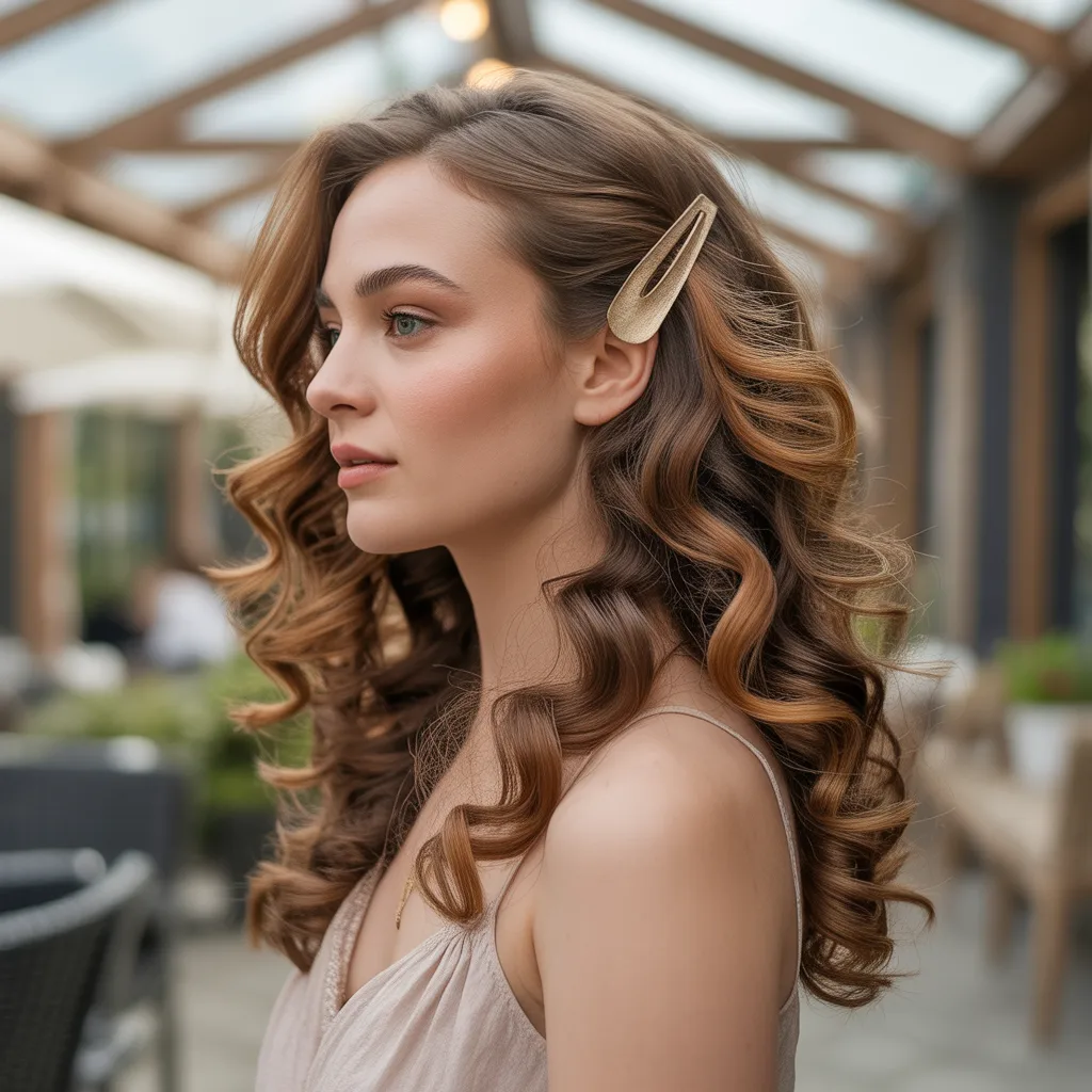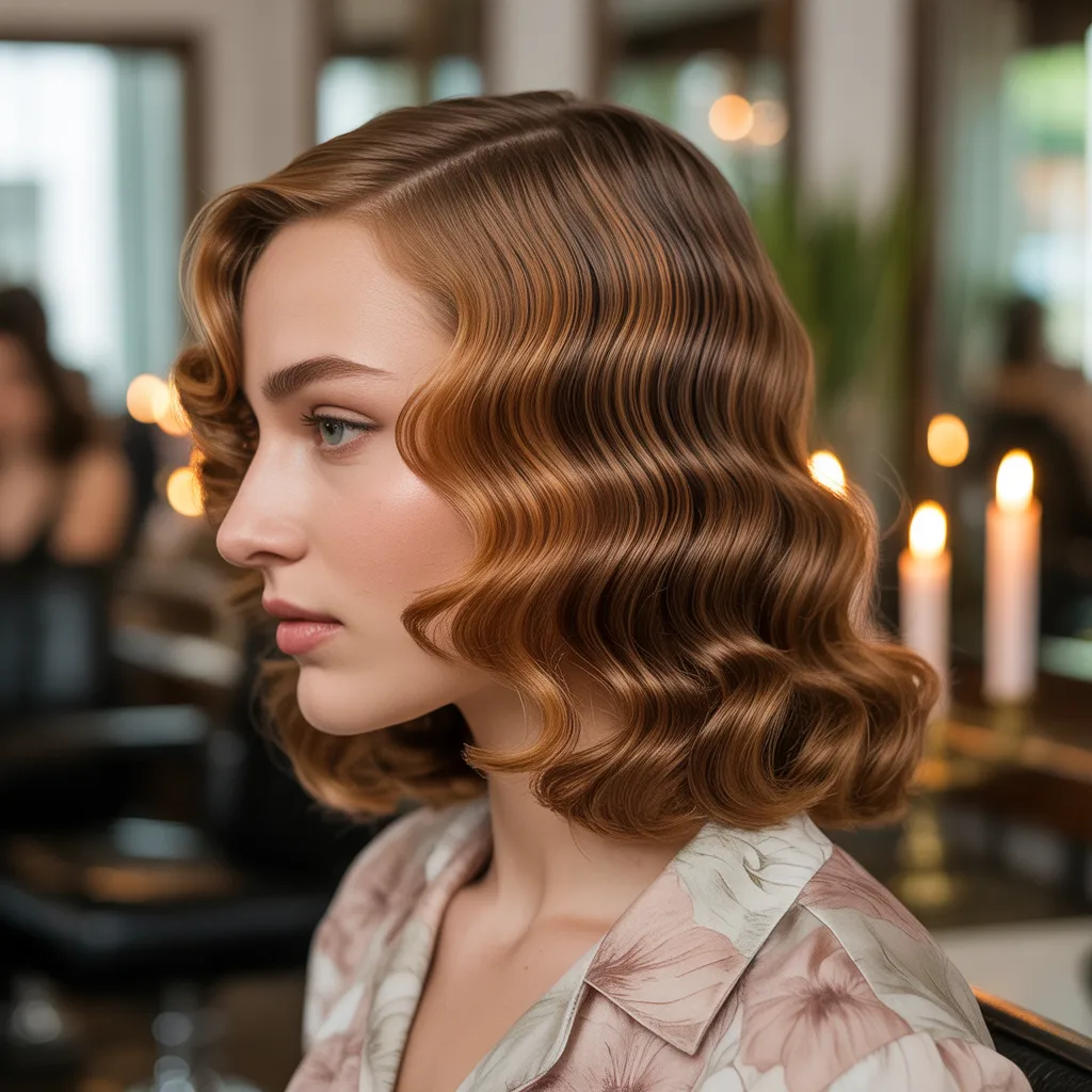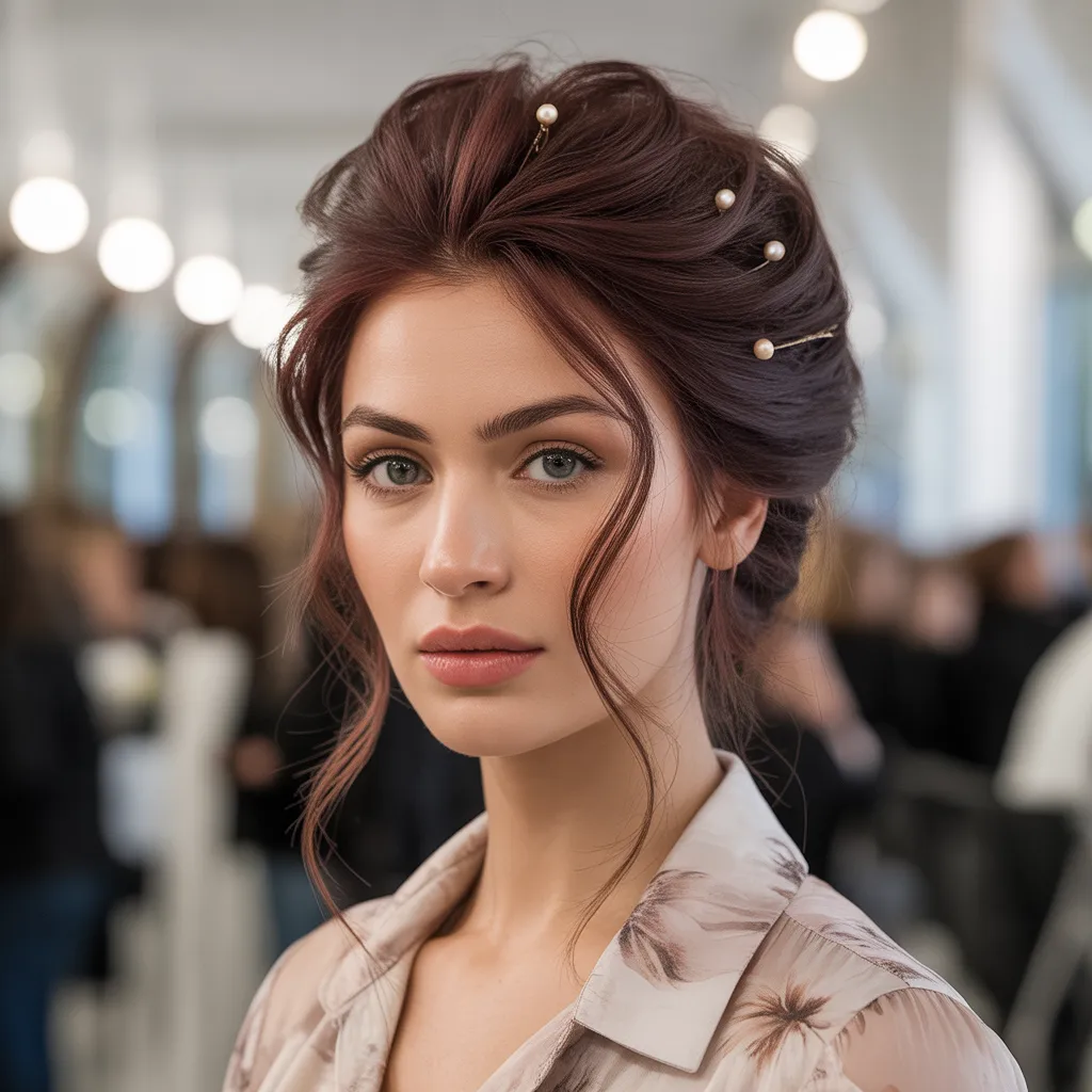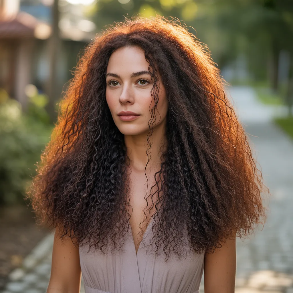 Woman with voluminous deep espresso hair showcasing a glamorous mob wife hairstyle with soft waves and rich color