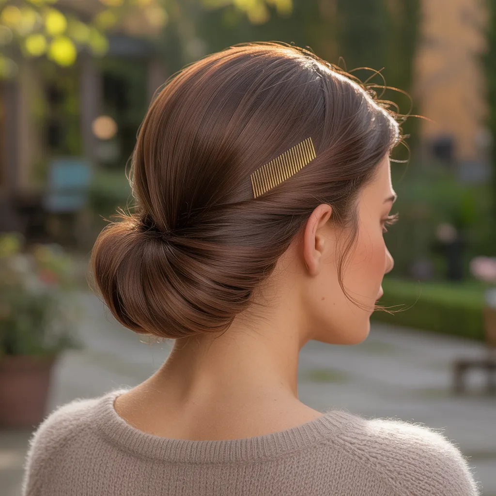 A twisted chignon is a refined and understated style for a formal evening. It is created by coiling the hair into a neat knot at the nape.