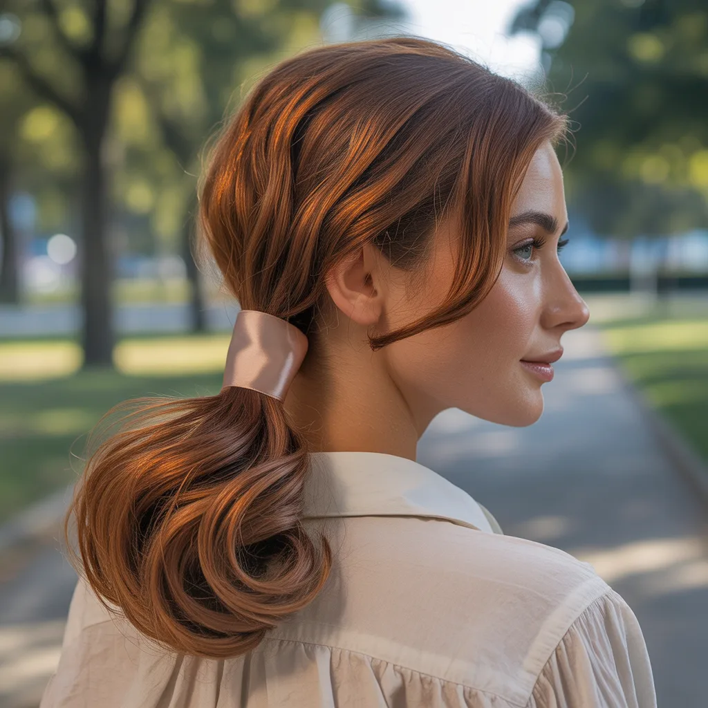 A low side ponytail is a graceful and understated choice for a formal event. It falls softly over one shoulder in a relaxed and polished elegant way.