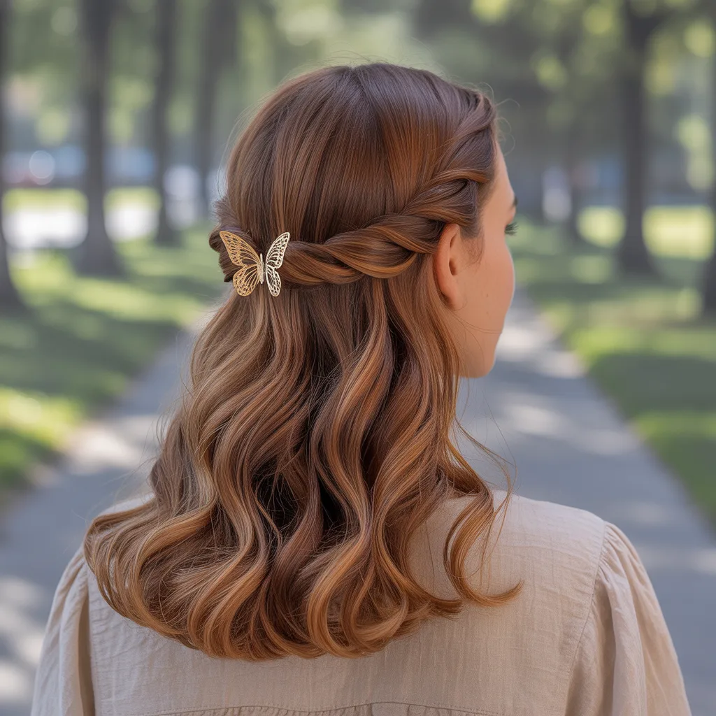 A half-up half-down look is a widely loved choice for many occasions. It keeps hair away from the face while still showing off its full length.