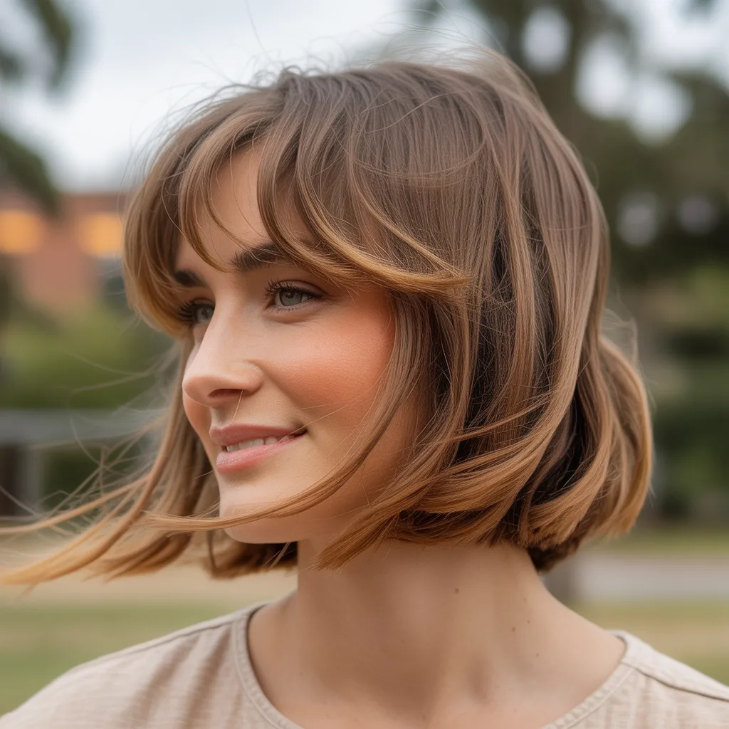 This version hits right at the chin for a balanced frame. The wispy bangs add softness without being too heavy.