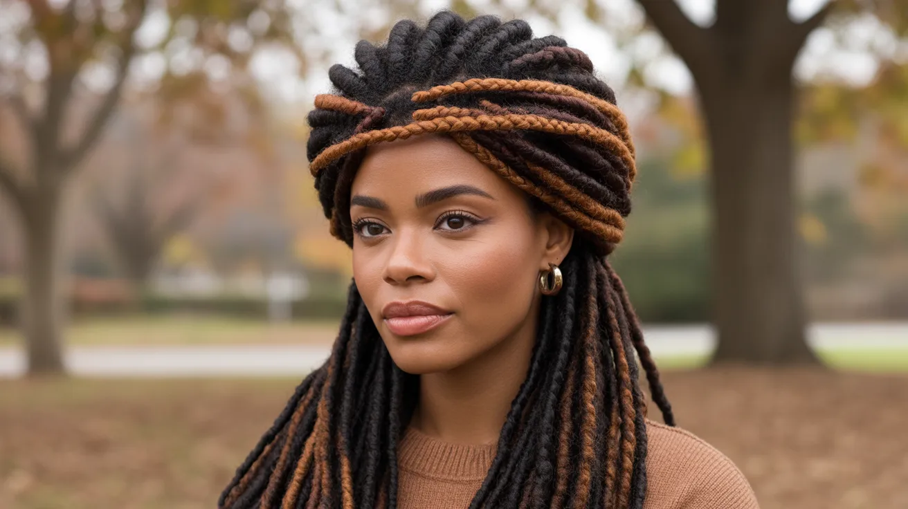 In colder months, keeping locs tucked away or wrapped helps prevent dryness and breakage at the tips, which is where most color-treated locs tend to be most vulnerable. In summer, protective styles reduce direct sun exposure to the dyed sections, which helps preserve the color for a longer period. These styles are practical without sacrificing appearance, and they tend to look neat and deliberate, making them suitable for both casual and more formal settings throughout the year.