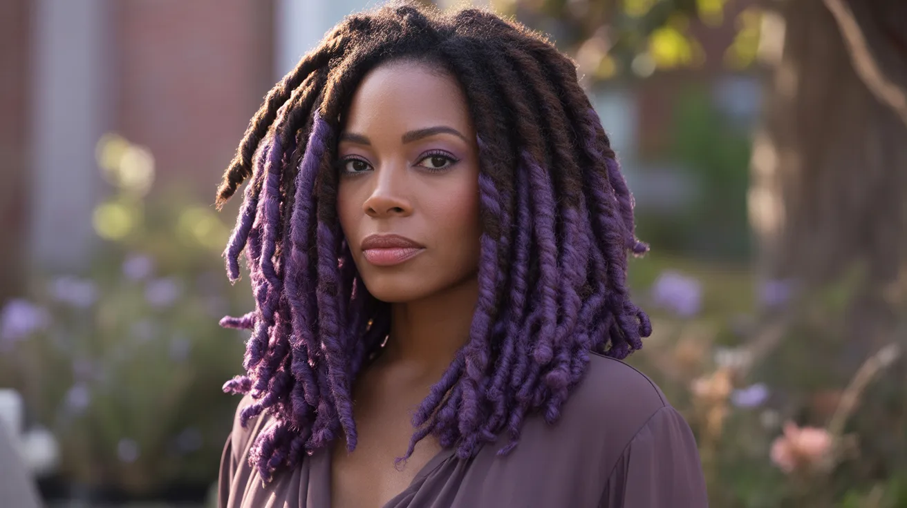 Purple shades have a unique quality on locs because they feel simultaneously bold and sophisticated. Deep plum and violet tones have a richness that works beautifully on darker hair, while lighter lavender shades offer something softer and more whimsical. Purple dyed locs are a popular choice among people who want color that feels special without leaning too far into bright or neon territory.