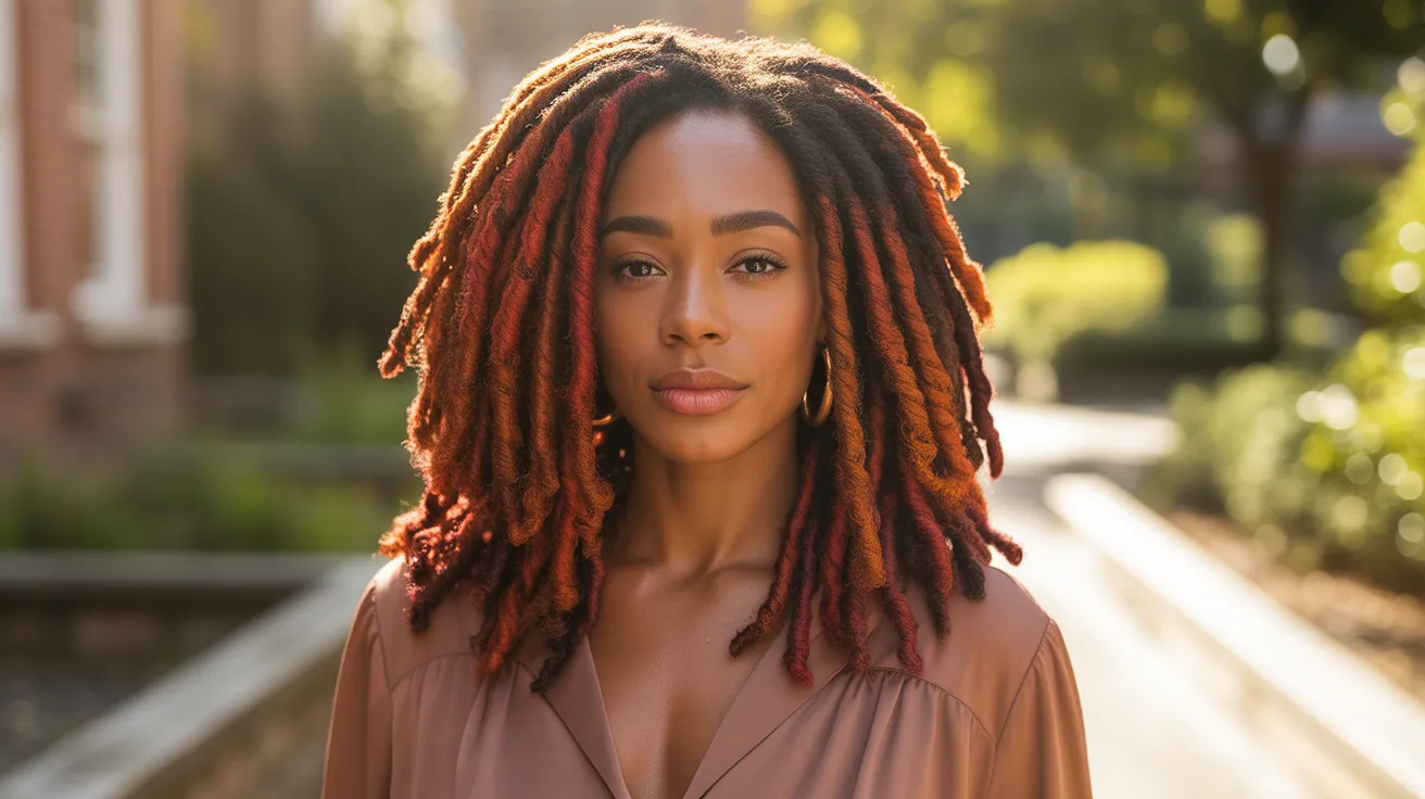 After trying this on different occasions, it was noticed that red tones on locs tend to fade toward a warmer orange or copper shade, which many people end up appreciating as much as the original color. This natural progression means that a single dye job can produce several different looks over time without any additional work. Red and copper dyed locs pair particularly well with earth-toned clothing and accessories, creating a cohesive overall look that feels warm and naturally styled.